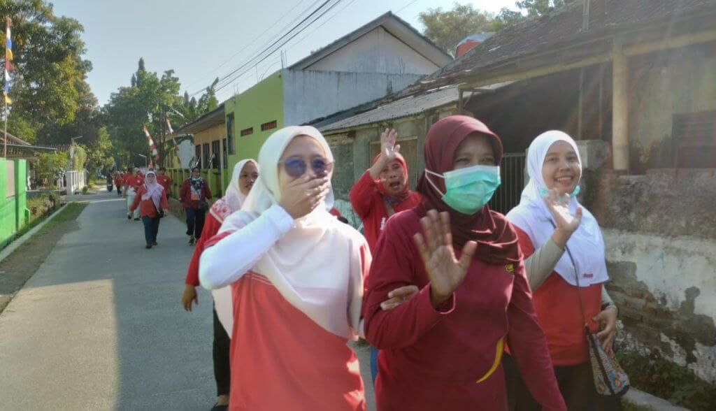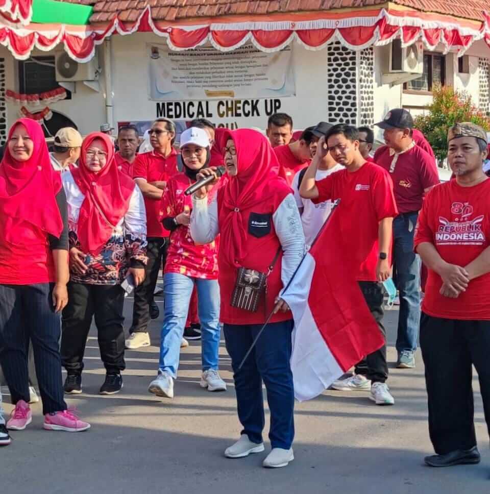 Para peserta antusias mengikuti acara jalan santai yang digelar oleh RSUD Waled dalam rangka memperingati HUT RI ke-80