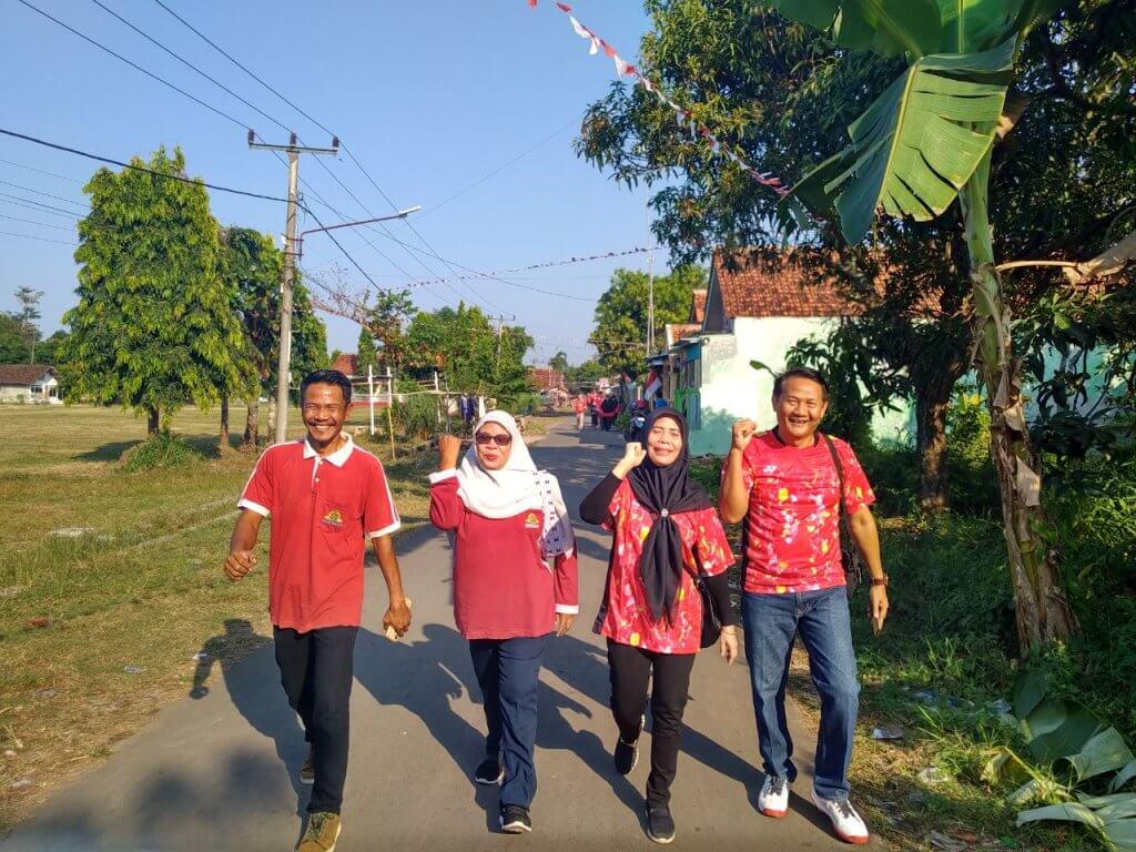 Para peserta jalan sehat RSUD Waled tiba di Desa Pasaleman.