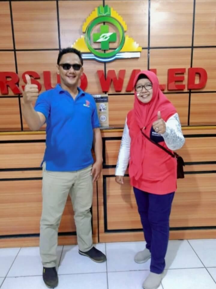 Plt Direktur RSUD Waled dr. Hj. Dwi Sudarni, MARS, berpose bareng Tim JP usai wawancara.