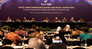 KOTA BANDUNG — Penjabat Gubernur Jawa Barat Bey Machmudin berpesan kepada Komisaris Utama yang baru membawa bank bjb menjadi perbankan terdepan di Indonesia. Rapat Umum Pemegang Saham (RUPS) Luar Biasa tahun 2024 PT BJB di Trans Luxury Hotel, Kota Bandung, Kamis (5/9/2024), menghasilkan Taswin Zakaria sebagai Komisaris Utama. Bey mengingatkan pentingnya integritas dalam menghadapi berbagai tantangan perbankan, apalagi dengan membawa ...