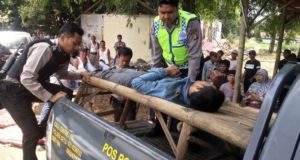 Tak Ada Ambulan, Dua Korban “Adu Banteng” Diangkut Kursi Bambu BEKASI – Anggota Polsek Setu Polres Metro Bekasi mengevakuasi dua korban pemotor yang mengalami luka parah dengan diangkut dengan kursi bambu milik warga sekitar lokasi kejadian di Jalan Raya Taman Sari, Kecamatan Setu, Kabupaten Bekasi-Cileungsi, Kabupaten Bogor, sekitar pukul 11.30 WIB, Senin (30/10). Kedua korban tersebut adalah, Amirul Mukminin (31) ...