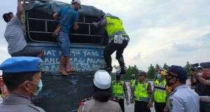 CIREBON – Berbagai cara dilakukan pemudik agar bisa pulang kampung dan berlebaran bersama keluarga. Salah satunya, ngumpet di truk barang, ditutupi terpal. Peristiwa ini terjadi di Gerbang Tol Palimanan, Cirebon, Senin (4/5/2020). Pagi itu, Gerbang Tol Palimanan tampak ramai. Sejumlah anggota Polisi beserta TNI dan personil Dinas Perhubungan terlihat siaga di lokasi. Diantara para anggota Kepolisian itu, tampak Kapolda Jabar, ...