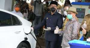 KOTA BANDUNG – Gubernur Jawa Barat (Jabar) Ridwan Kamil meresmikan pengoperasian Stasiun Pengisian Kendaraan Listrik Umum (SPKLU) PT PLN (Persero) yang berlokasi di Area Parkir Timur Gedung Sate, Kota Bandung, Senin (2/11/20). Peresmian SPKLU atau stasiun charging kendaraan listrik ini bertepatan dengan peringatan Hari Listrik Nasional ke-75. Kang Emil –sapaan Ridwan Kamil– mengatakan, hadirnya SPKLU menandai akan dikonversinya seluruh kendaraan ...