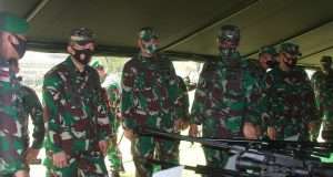 SUKABUMI, – Waasops Panglima TNI Marsma TNI Jorry S. Koloay, di dampingi Waasops Kasad dan Kasdam III/Slw Brigjen TNI Kunto Arief Wibowo melaksanakan pemeriksaan kesiapan operasi dan gelar perlengkapan perorangan dan satuan di Batalyon Infanteri (Yonif) 310/Kidang Kencana, Jalan Pelabuhan II Cikembar, Sukabumi Jabar, Kamis (15/10/2020). Yonif 310/KK Brigif 15 Kujang II Kodam III/Siliwangi akan melaksanakan tugas operasi Pamtas Mobile ...
