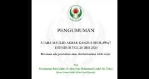 KOTA PEKALONGAN – Setelah menjadi sorotan dan perbincangan, terlebih pencopotan dua kapolda karena dianggap lalai dalam menegakan protokol kesehatan, ahirnya Habib Luthfi bin Yahya memutuskan untuk menunda rangkaian acara maulid akbar di Kanzus Sholawat yang semula akan digelar 18-22 November, direncanakan kembali alias diundur jadi tanggal 20 Desember 2020 mendatang. Habib Luthfi mengumumkan sendiri pengunduran acara tersebut. Rais ‘Aam Jam’iyyah Ahlith Thariqah ...