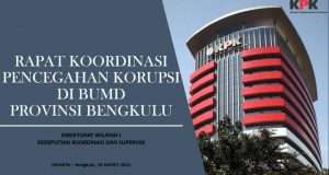 KPK mulai menyasar Badan Umum Milik Daerah (BUMD) guna mendorong upaya pencegahan korupsi di internal BUMD, di antaranya adalah BUMD yang dimiliki Pemerintah Provinsi Bengkulu melalui rapat koordinasi pencegahan korupsi secara daring, 10 Maret 2021. Direktur Korsup Wilayah I KPK Didik Agung Widjanarko mengingatkan, tujuan didirikannya BUMD menurut UU No 23 Tahun 2014 tentang Pemerintahan Daerah, adalah memberikan manfaat bagi ...