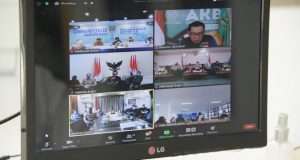 KOTA BANDUNG – Gubernur Jawa Barat (Jabar) Ridwan Kamil sekaligus Ketua Gugus Tugas Percepatan Penanggulangan COVID-19 Jabar memimpin rapat koordinasi bersama lima kepala daerah di wilayah Bogor-Depok-Bekasi (Bodebek) melalui video conference dari Gedung Pakuan, Kota Bandung, Senin (14/9/20). Rapat tersebut utamanya membahas kebijakan yang akan diterapkan di Bodebek khususnya wilayah yang berbatasan langsung dengan DKI Jakarta terkait pemberlakuan pengetatan Pembatasan Sosial ...